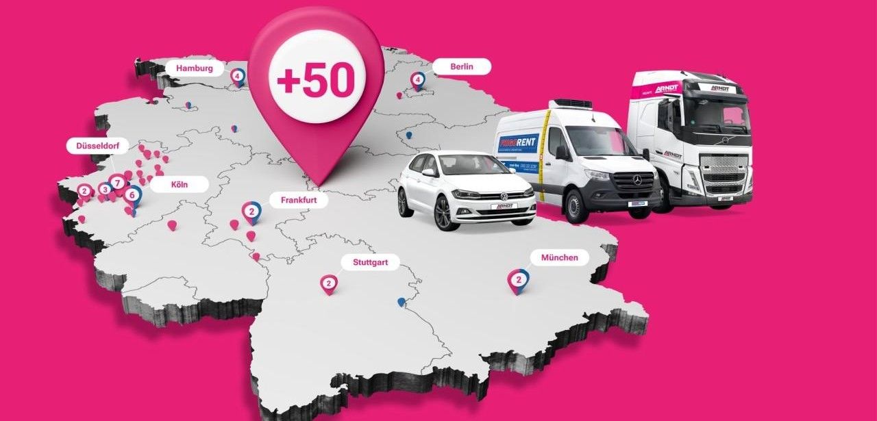 Mit dem Zukauf weiterer Niederlassungen in deutschen Metropolregionen hat ARNDT sein Servicenetz dicht gemacht und strategisch optimal verteilt. Die direkte Kundennähe gewährleistet verkürzte Liefer- und Reaktionszeiten bei eiligen Fahrzeuganforderungen sowie Änderungswünschen. Lokale Teams übernehmen laufende Wartung, Technikchecks und kurzfristige Fahrzeugwechsel vor Ort. Dieses Konzept sorgt für hohe Betriebssicherheit und planbare Kosten. Gleichzeitig wird durch standardisierte Prozesse und transparente Kommunikation die Logistik- und Fuhrparksteuerung vereinfacht, mit digitaler Steuerung und Echtzeit-Reporting. Effizient.
