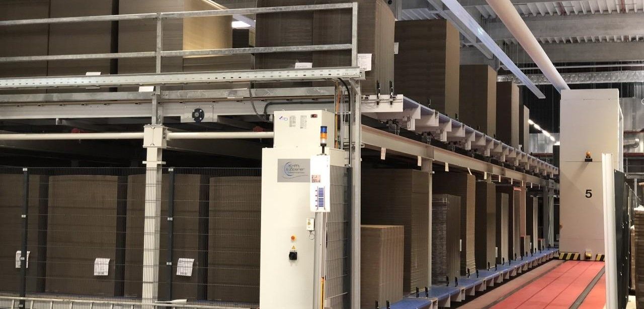 Bediener greifen über das moderne Order-Frontend in Druckerei und Kaschiererei direkt auf ihre aktuellen Produktionsaufträge zu. Eine integrierte Automationslösung steuert automatisiert Transferwagen, Dreheinheit und Zwischenpuffer, um gleichartige Kartonagen entsprechend Länge, Breite und Kartonstärke bedarfsgerecht Just-in-Time an die Verarbeitungsmaschinen zu fördern. Dabei übernimmt die Anwendung Palettenrotation, das Drehen der Transporteinheiten sowie die automatische Bestückung der Anleger, sodass alle Transportprozesse ohne menschliche Einschaltung ablaufen. Optimiert werden Laufzeiten, Störungen automatisch an Leitwarte gemeldet.
