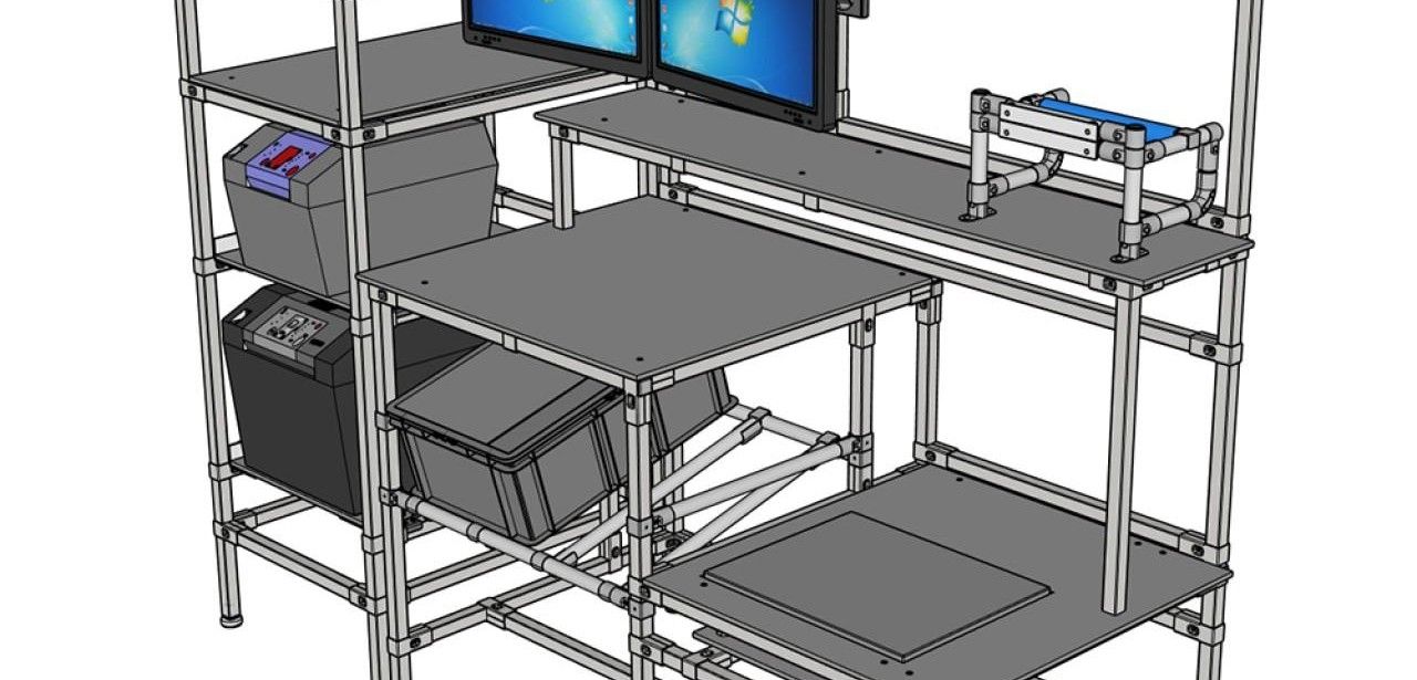 Arbeitsplatz_Ergonomie_Aufbau2 aus Vierkant-Rohrklemmsystem Tetriform (Foto: NeoLog GmbH)