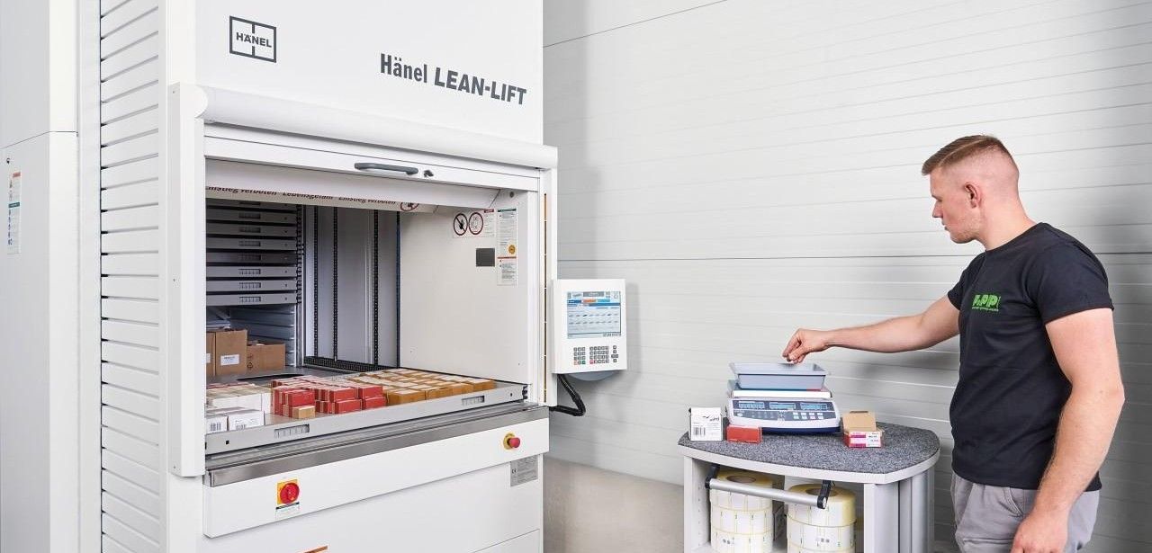 Kleinteile, Werkzeug und Betriebsmittel gelagert dank Hänel Lean-Lift(R) System