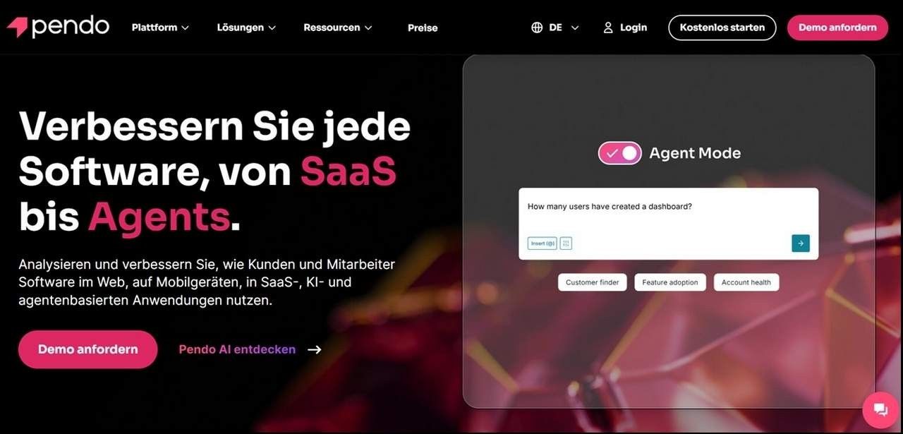 Pendo kombiniert in seiner Produktplattform Funktionen zur lückenlosen Überwachung von SaaS- und agentenbasierten Tools mit einer eigens entwickelten Agent Analytics-Lösung. Fehlende Einblicke und blinde Flecken in den Nutzerprozessen werden in Echtzeit erkannt und analysiert. Auf Basis dieser Daten werden konkrete Handlungsschritte abgeleitet, die dabei helfen, Benutzerpfade zu optimieren, Abläufe zu verschlanken und die Interaktion mit KI-Komponenten zu verbessern. So entstehen effizientere Workflows und ein deutlich gesteigertes Nutzererlebnis. und steigert ROI.
